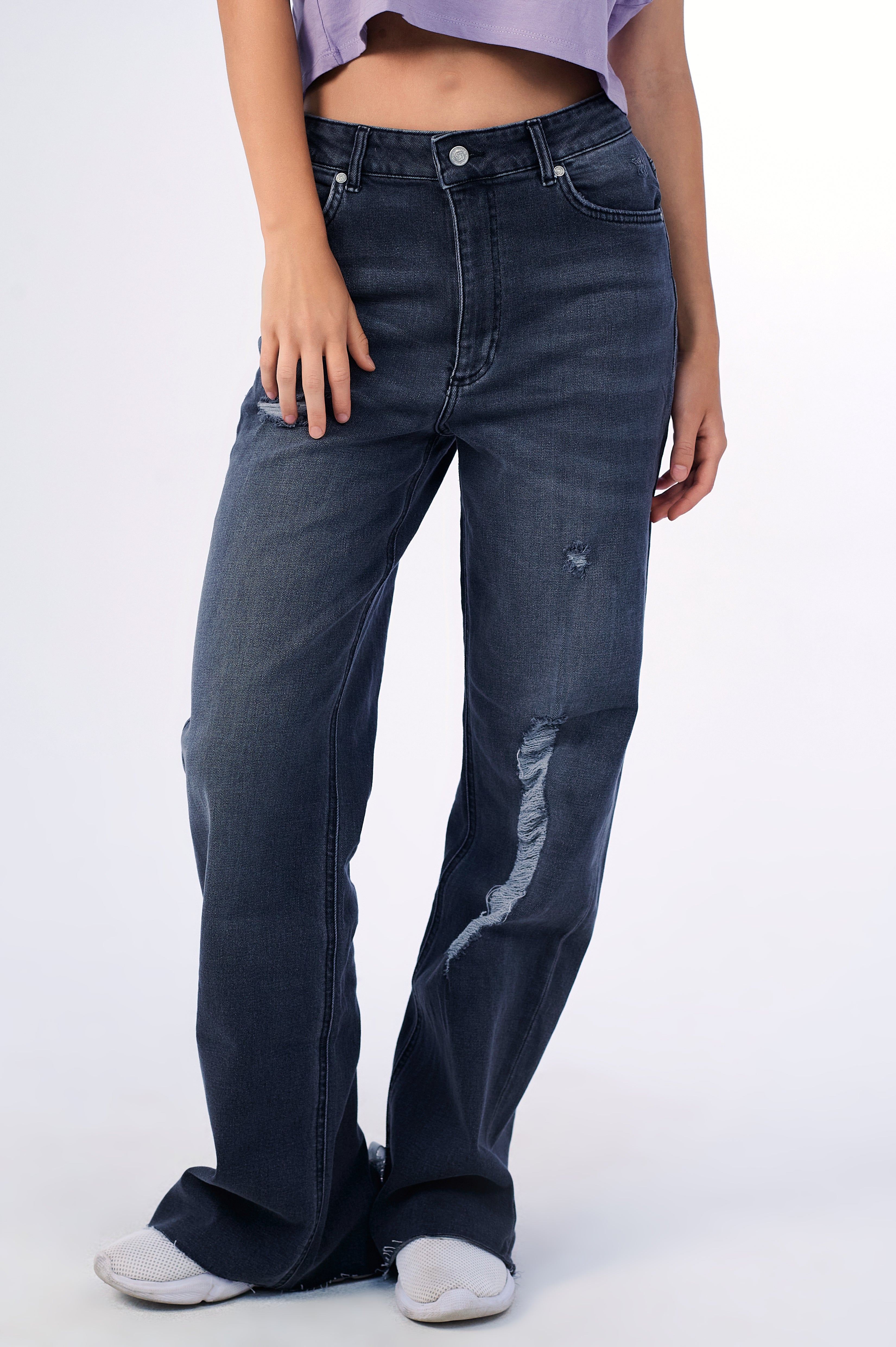 Crow Black Level Up Boyfriend Jeans is curated in a sleek and comfortable shape just for you. These pants are straight through the thigh, tapering down to a tapered/wide leg fit towards the ankle, for a relaxed look and fit. With added stretch that bounces back after being worn, so the fabric never loses its shape.Ê