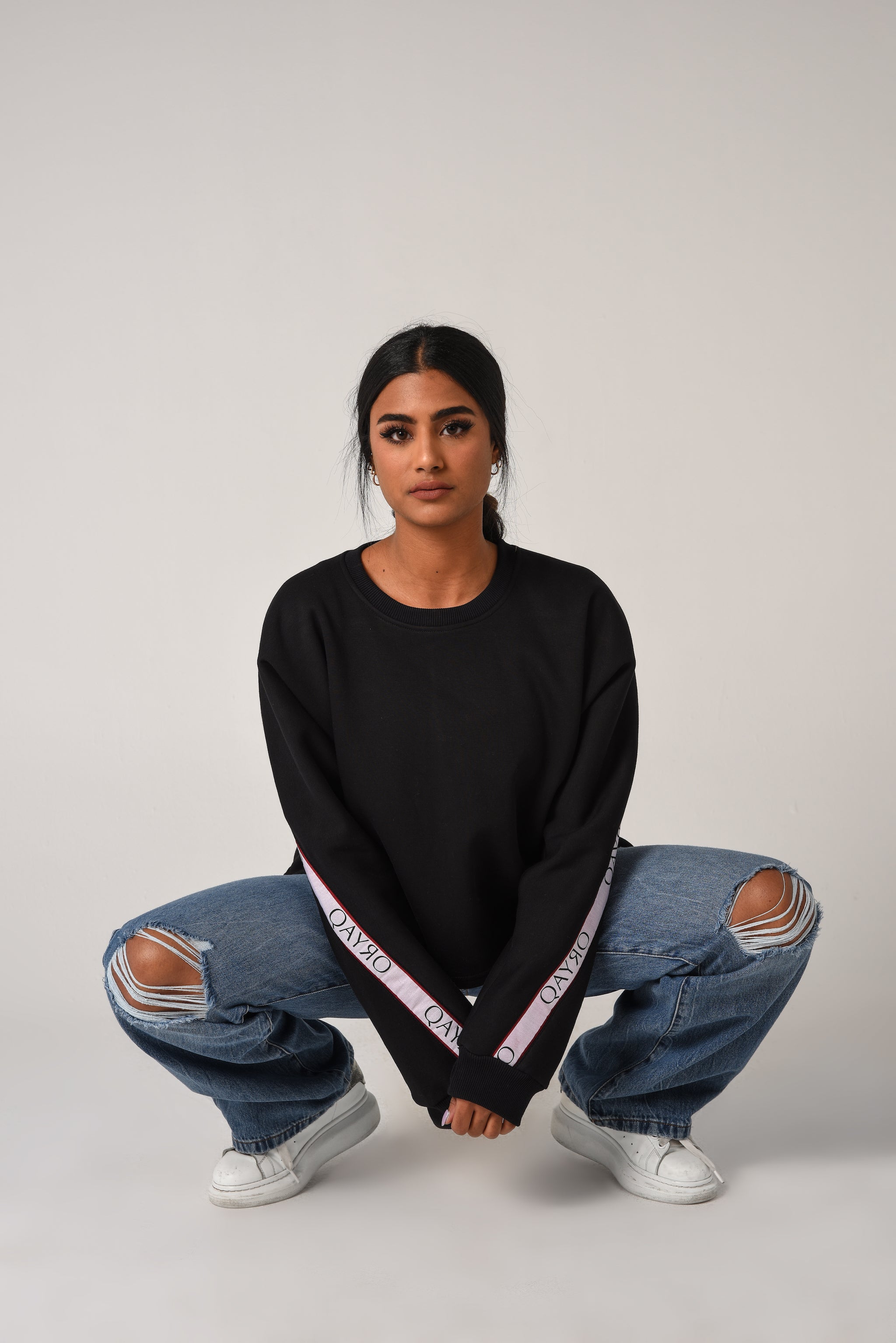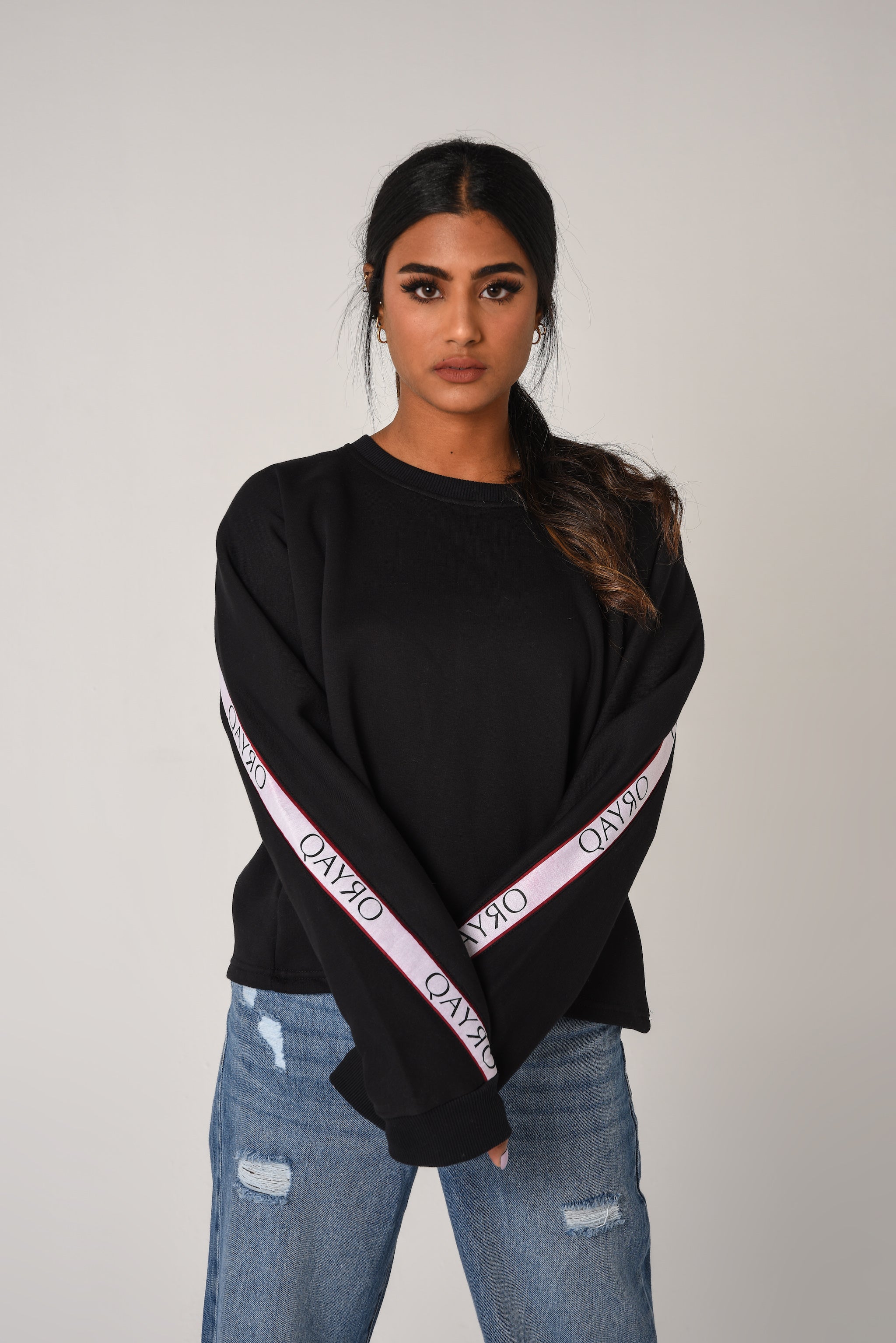Your basic sweater with a sporty-chic twist. Featuring a crewneck and the Qayro logo taped along the back of the shoulders and along the sleeves.