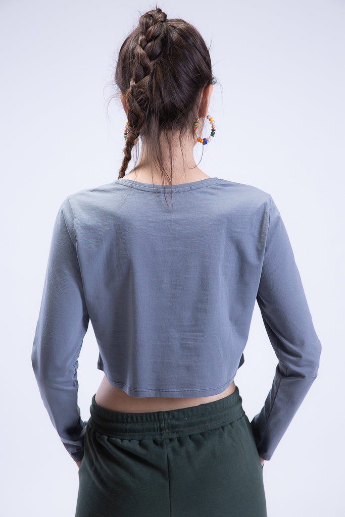 Plain Jane Long Sleeve Cropped Tee in Grey Ashes. This light and airy basic, long-sleeve crop top features a classic crew neckline in an airy 100% cotton material in a regular fit.Ê