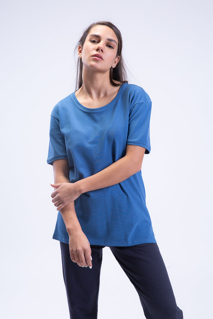 Regular Fit Essentials Crewneck in Indigo Blue. The basic t-shirt every wardrobe needs. Regular Fit, Half Sleeve, made of breathable cotton pique fabric.Ê
