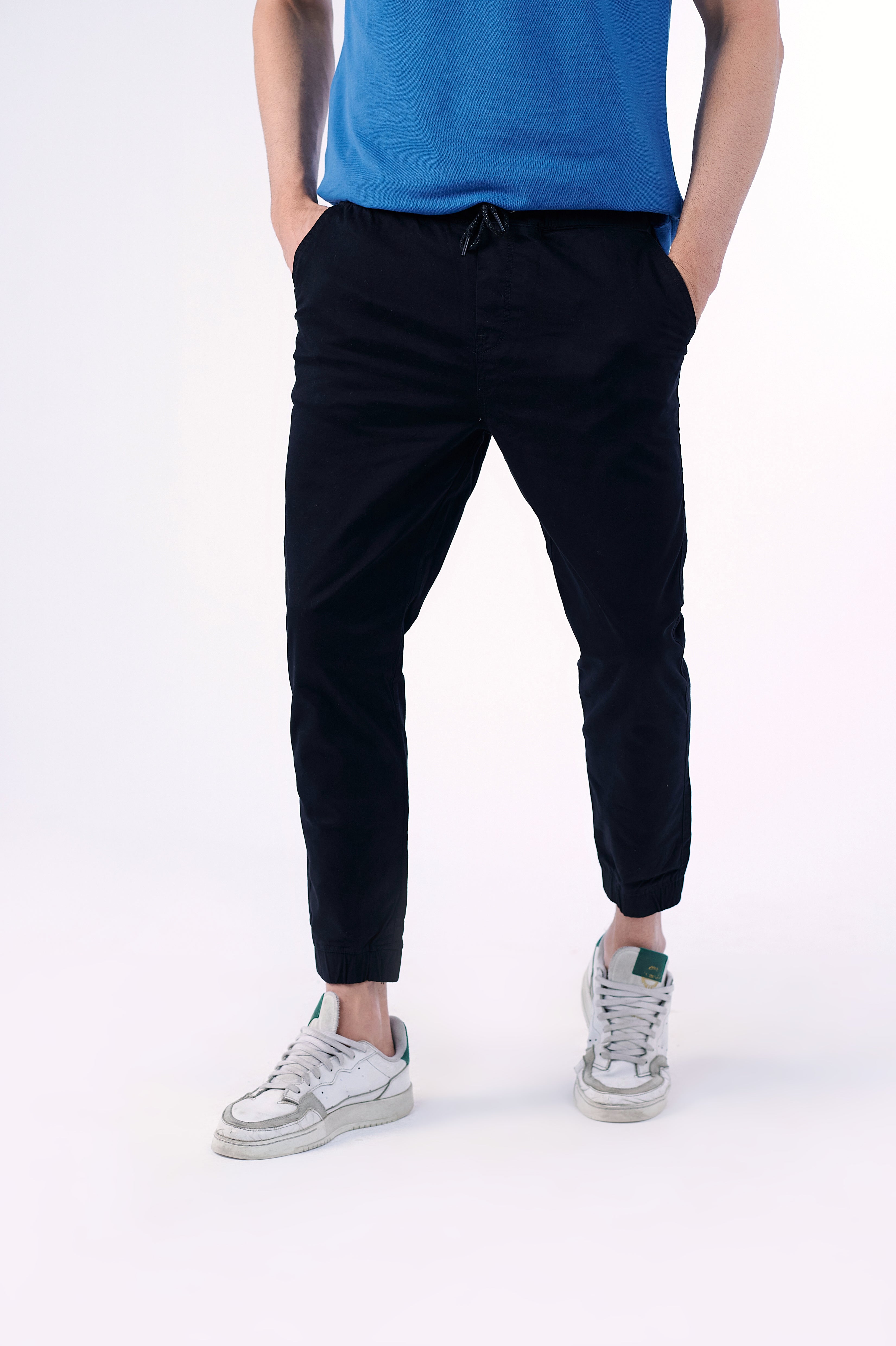The Essential Cargo Joggers in Ink Black are made from stretchy cotton Gabardine with an elasticated drawstring waist, side pockets and ribbed hems. The comfortable essential your wardrobe needs.Ê