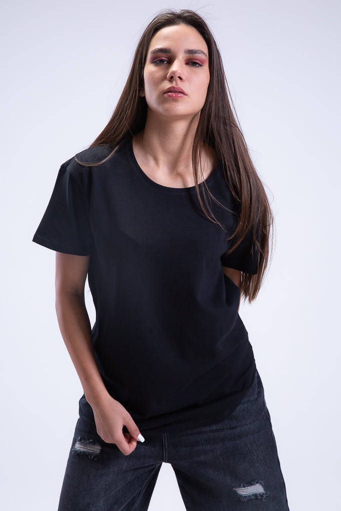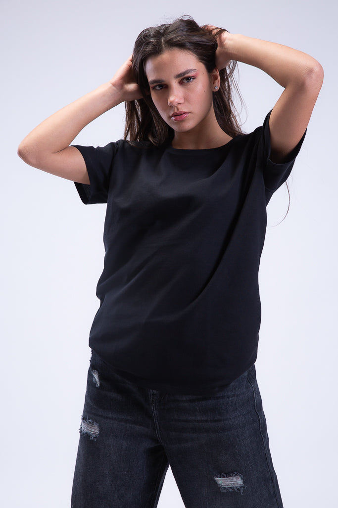 Regular Fit Essentials Crewneck in Ink Black. The basic t-shirt every wardrobe needs. Regular Fit, Half Sleeve, made of breathable cotton pique fabric.