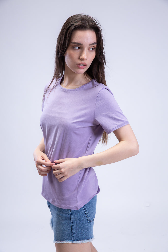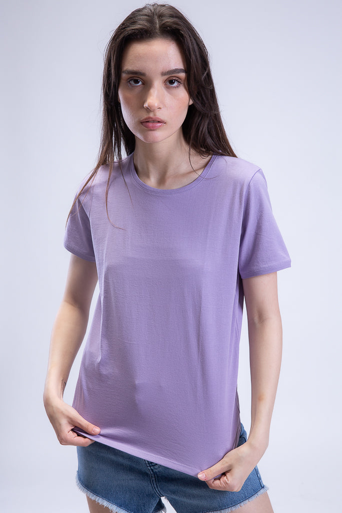 Regular Fit Staple Crewneck in Lavender. This light and airy basic t-shirt features a classic crew neckline in an airy 100% cotton material in a regular fit. A wardrobe staple.Ê