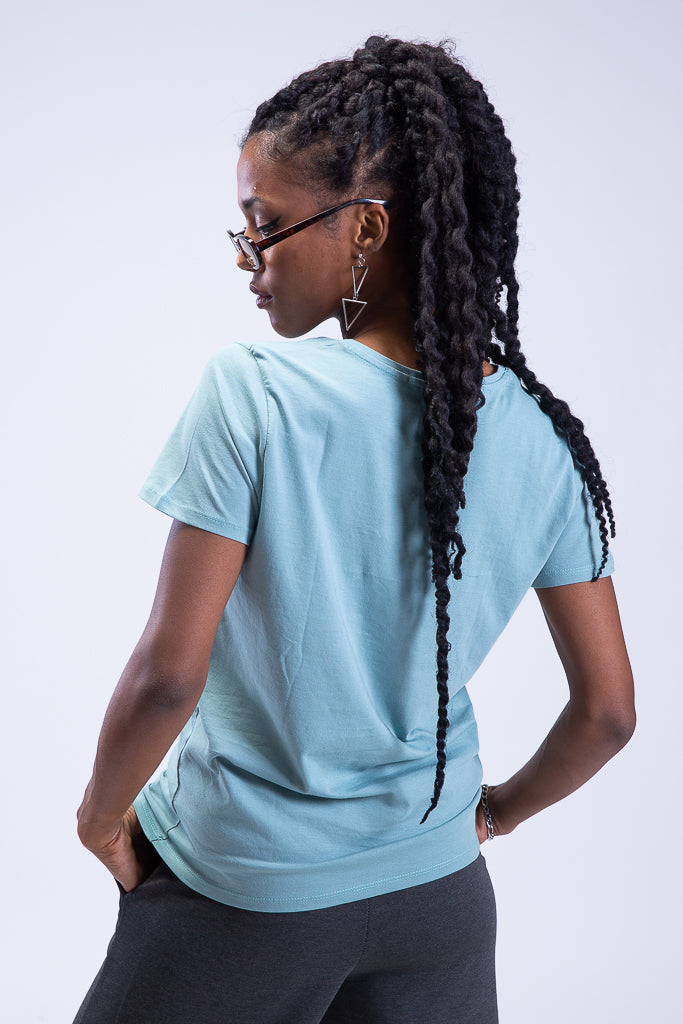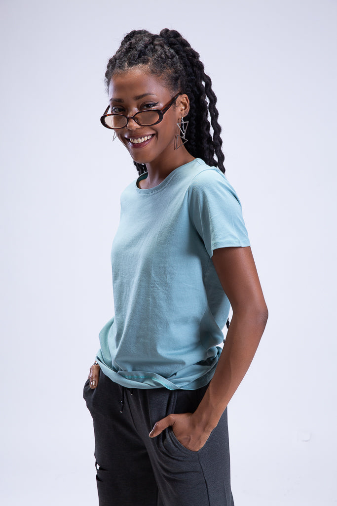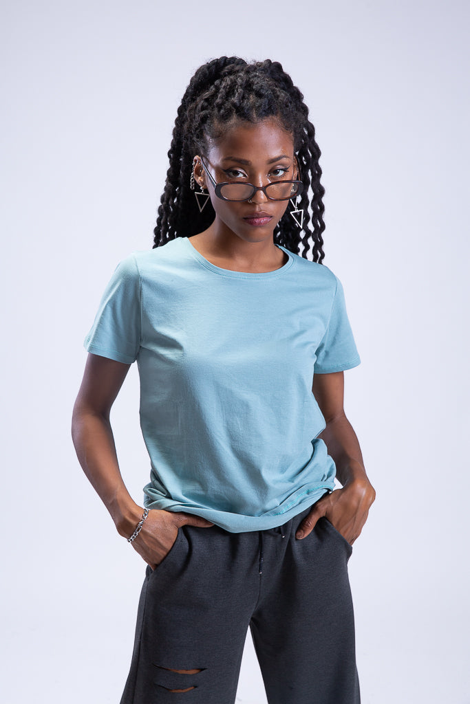 Regular Fit Staple Crewneck in Mint. This light and airy basic t-shirt features a classic crew neckline in an airy 100% cotton material in a regular fit. A wardrobe staple.