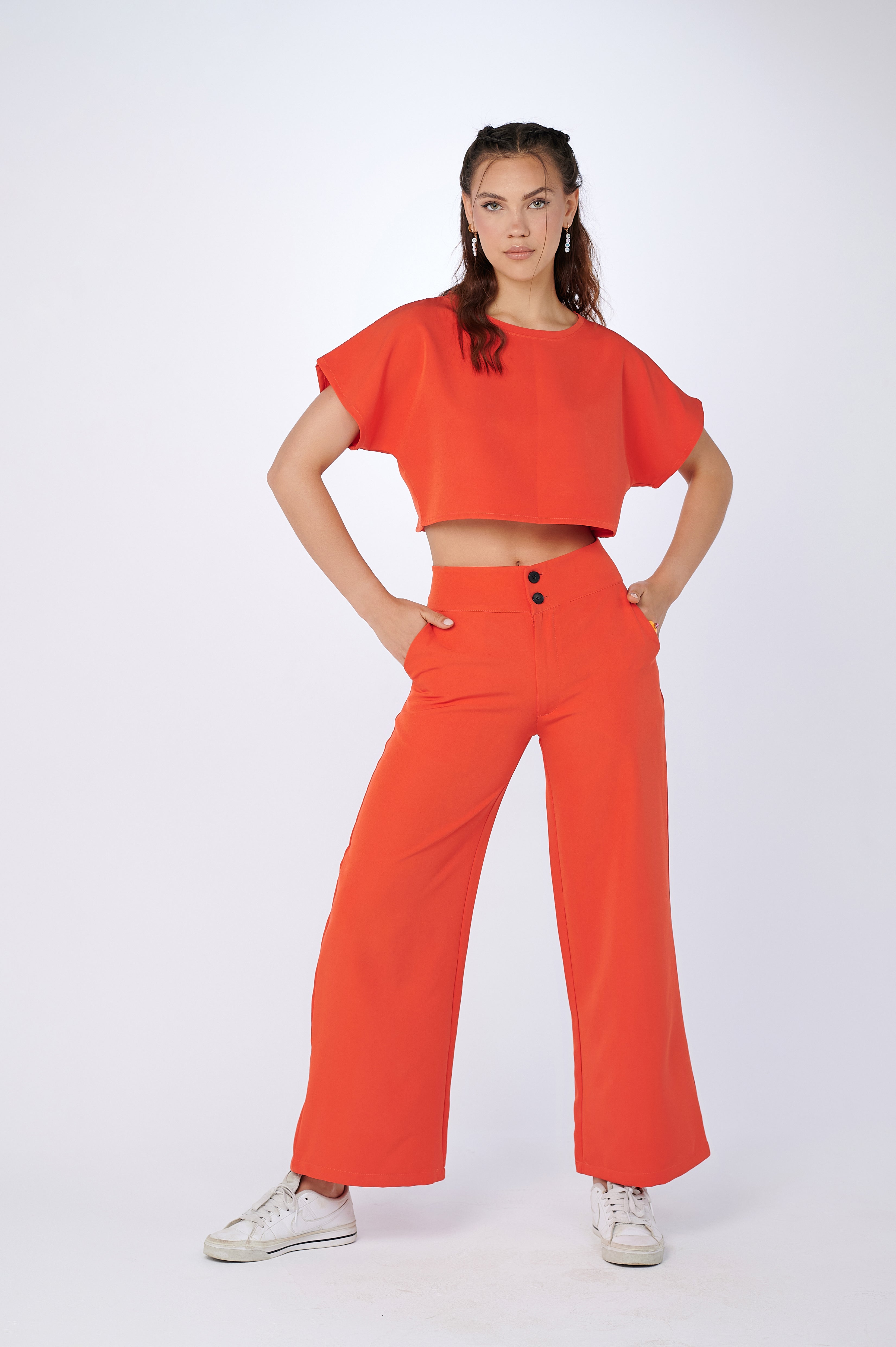 Dare to stand out with On The Go Gal Set's versatile and comfortable set! This two-piece set is perfect for any occasion whether you're out for a casual date or at the office, with its cropped top and wide leg pants, will keep you both comfortable and looking chic. Choose from four vibrant colors to enhance your look and express yourself in style! Get ready for the compliments!
