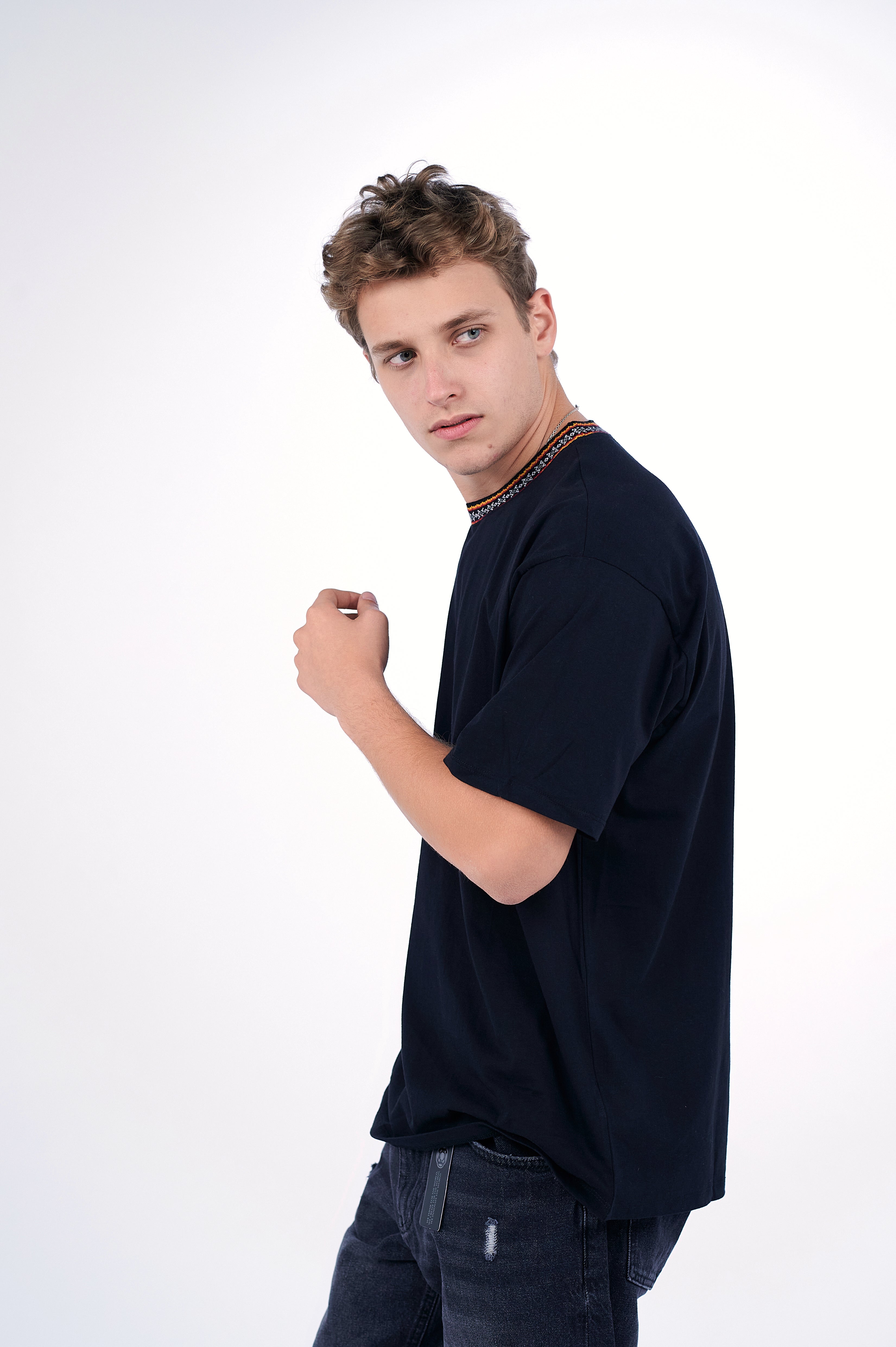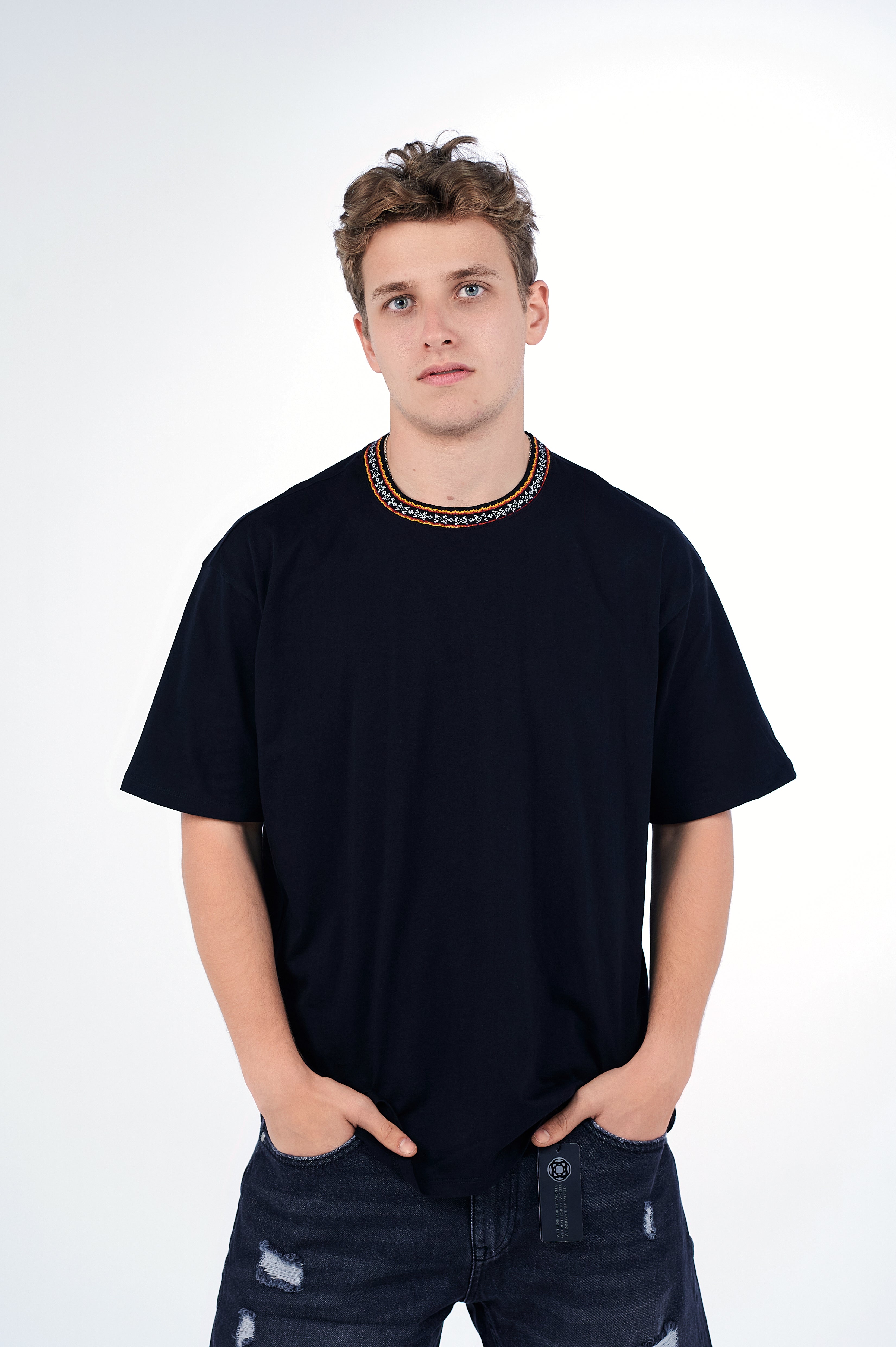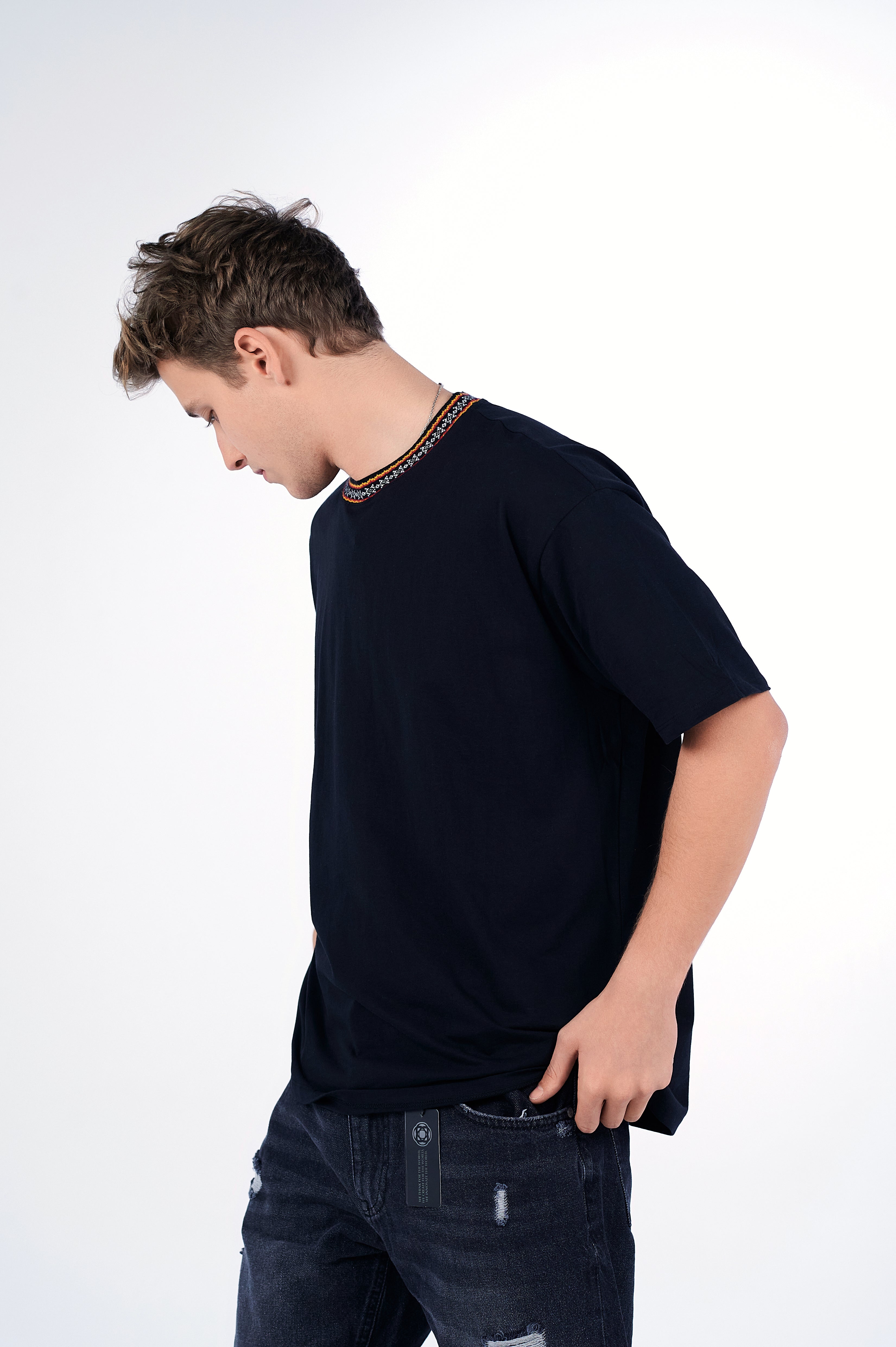 Oversized Arabesque Jacquard Crewneck is not your average crewneck. Featuring a tribal inspired neckline to add a unique flare to your basic crewneck in an oversized fit. Size down if you favor a relaxed fit instead.