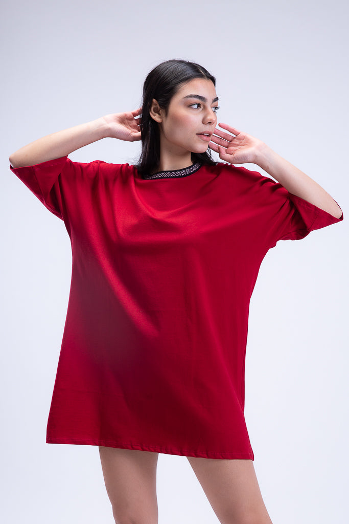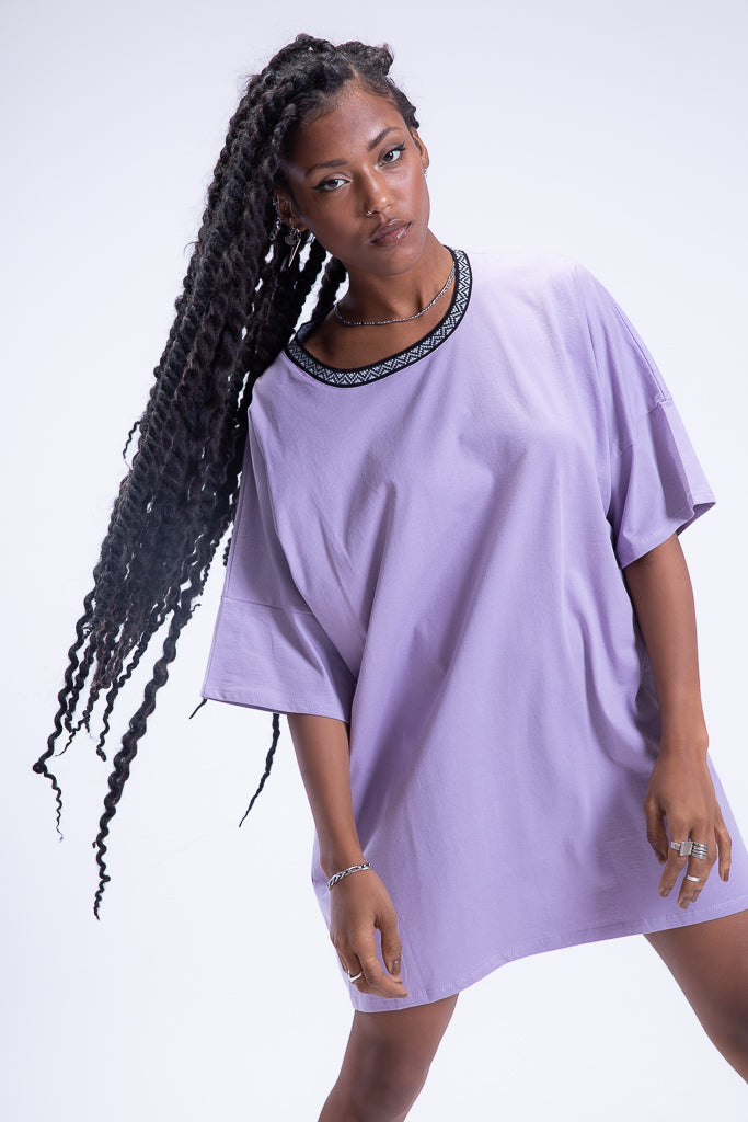 Oversized Ganado T-shirt Dress. Featuring a Ganado art design jacquard on itÕs neckline to add a unique flare to your basic t-shirt dress, in an oversized fit. Size down if you favor a relaxed fit instead.Ê