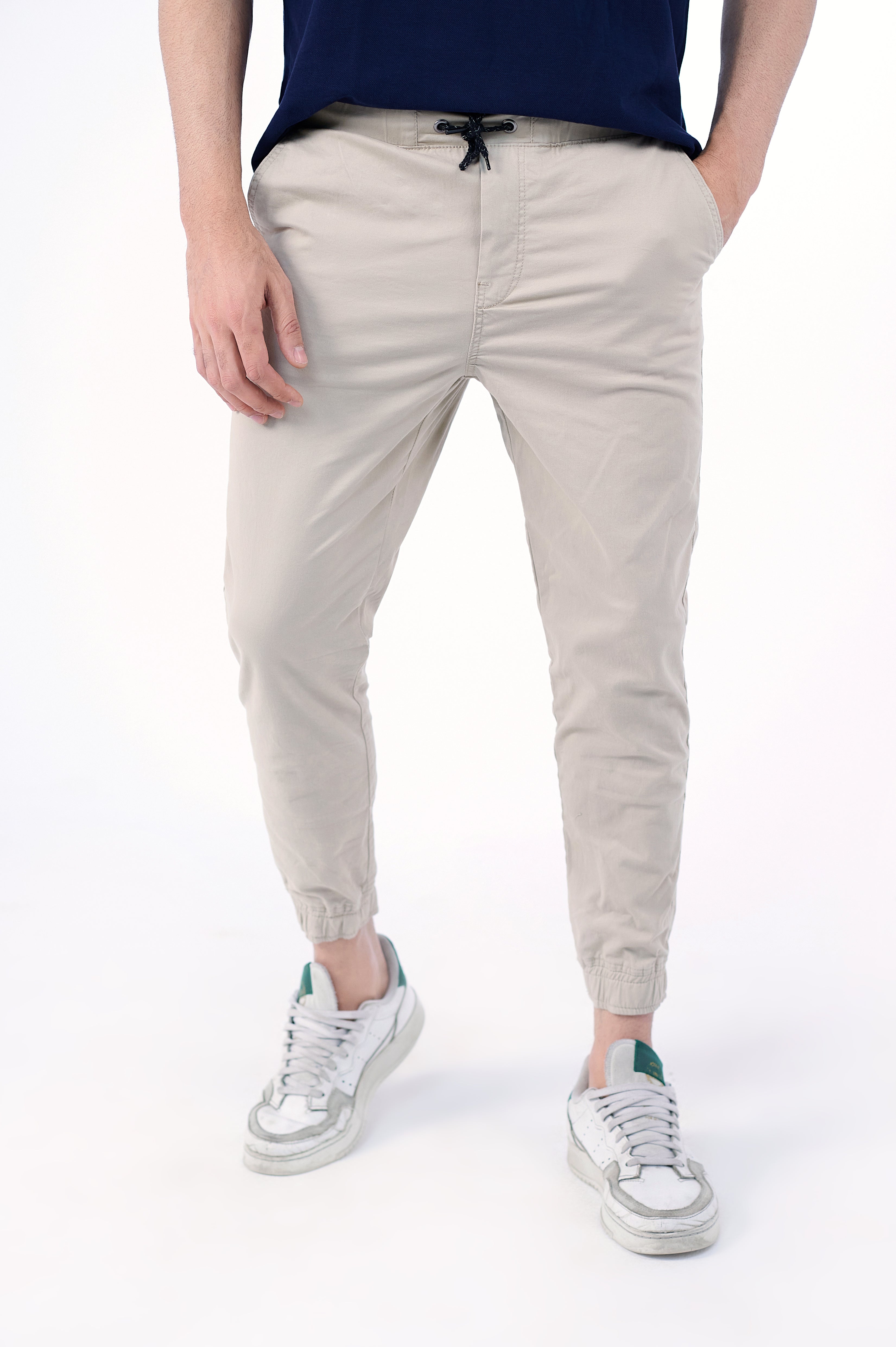 The Essential Cargo Joggers in Stone Beige are made from stretchy cotton Gabardine with an elasticated drawstring waist, side pockets and ribbed hems. The comfortable essential your wardrobe needs.Ê